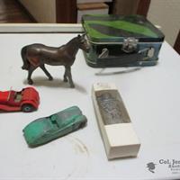 COLLECTIBLES & RELATED: Vintage & antique electric & mantle clocks; vintage radio; Fender amplifier; Gate wooden musical drum; open fans; retro kitchen items; cast iron items; 1969 Dunbar HS yearbook; various costume jewelry & watches; many asst. belt buckles; western bola ties; animals & figurines; old steel implement wheels; many galvanized tubs & items; retro chrome shoe shine stand; Huffy bike w/high handle bars; Katsu water pipe; several smoking pipes; walking sticks; display show case; Sterling ice cream freezer; lanterns; a lot of “new” licensed sports apparel & caps; wood carvings; lighted w/sound scene picture; Radio Flyer wagons; coal buckets; primitive tools.