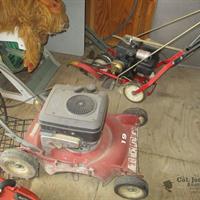 OUTDOOR TOOLS: Toro Recycler SP mower; Stihl BG89 gas blower; Sears front tine tiller; (2) Homelite chain saws; Homelite gas trimmer; gas edger; push reel mower; garden cart & trailer; charcoal grills; elect. leaf shredder; gas shredder; “new” Intex pool; many long-handle tools; many lawn & garden needs; several bicycles.